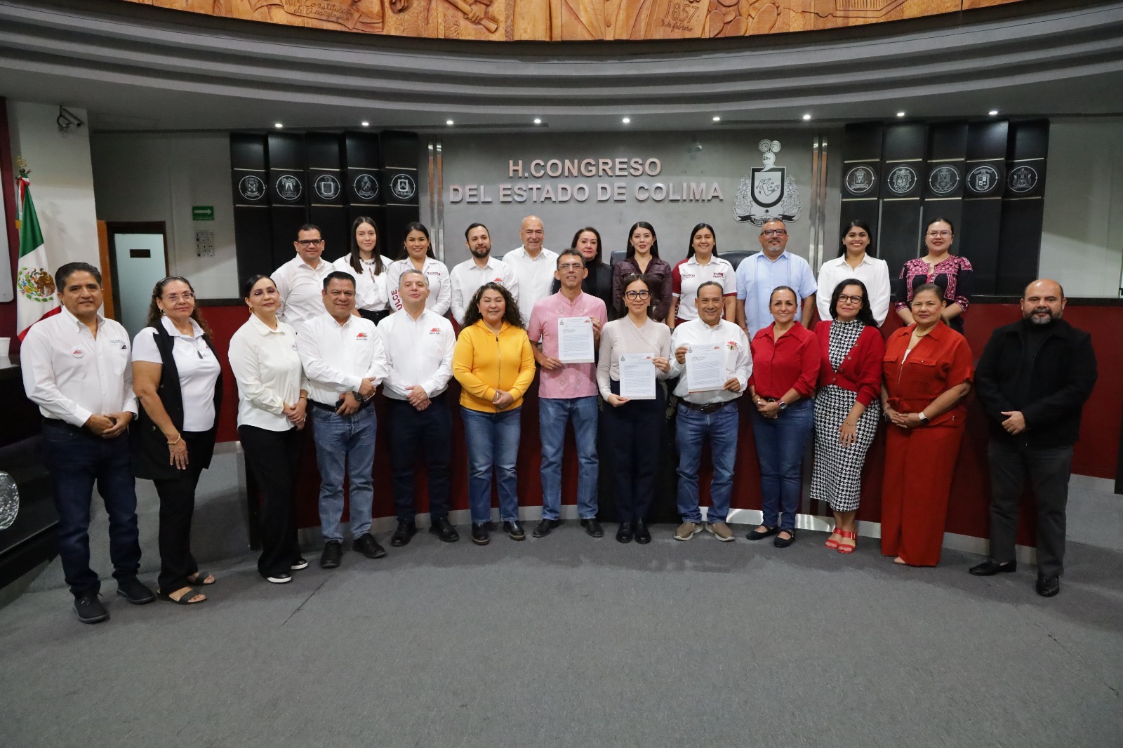 Diputadas y diputados integrantes de la LXI Legislatura de Colima, recibieron el pliego petitorio de incremento salarial y prestaciones 2026, para trabajadoras y trabajadores del Poder Legislativo, adheridos al Sindicato de Trabajadores al Servicio del Gobierno del Estado de Colima (S.T.S.G.E).